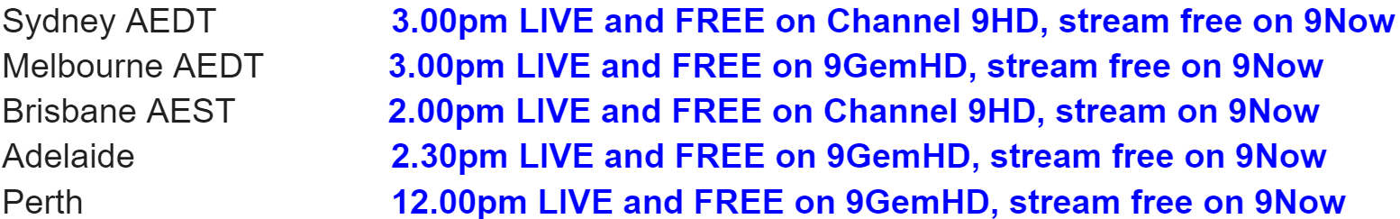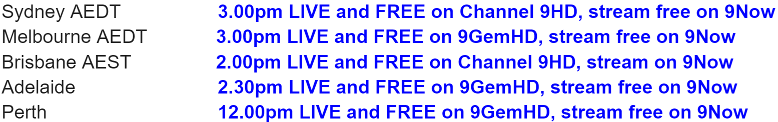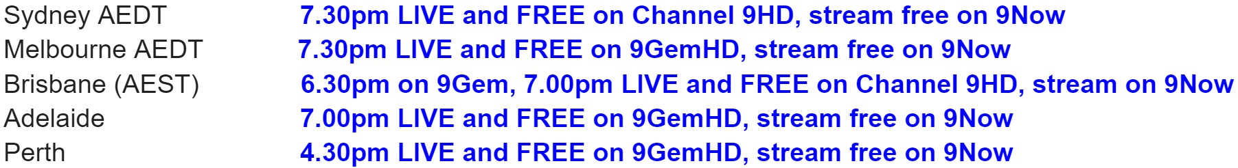 LIVE AND FREE ON CHANNEL 9HD AND 9NOW